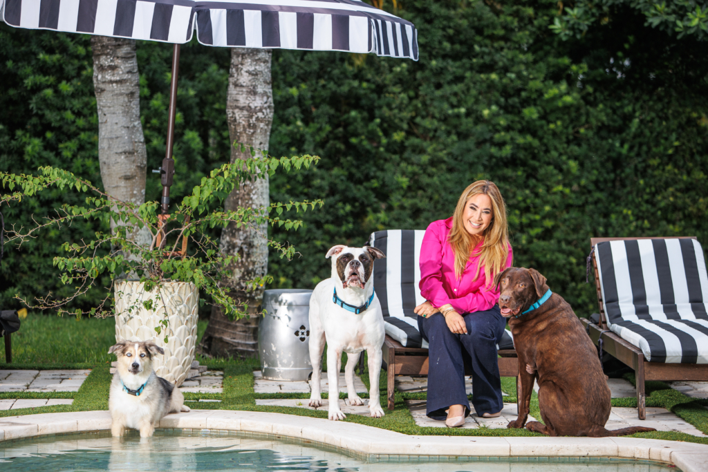 With two dogs already in the house, Lisette Calderon’s husband was adamant that their latest foster dog would not be a permanent addition to the household. But Lisette, who fell in love with Noah (renamed Corona, as he was adopted during the coronavirus pandemic and had a difficult time differentiating between his name and “no”), couldn’t give him up. That’s why Corona is the only pup to have her last name, rather than her husband’s. “He was a stray from the Miami-Dade Animal Shelter,” Lisette explains. “I received a message that the shelter was going to euthanize the larger dogs [because] they didn’t have anywhere to keep them…. [So,] I said, ‘Just give me the biggest dog, the dog that nobody wants. I’ll take him.’” When the shelter called a few months later, “he was already part of the family.” Now, Corona is one of the three “frat boys,” as Lisette calls her three pups. “They look like fraternity brothers. They’re not related by blood, but they’re just fun and funny and they’re best friends,” she explains. “They’re super athletic and always up for a party.”