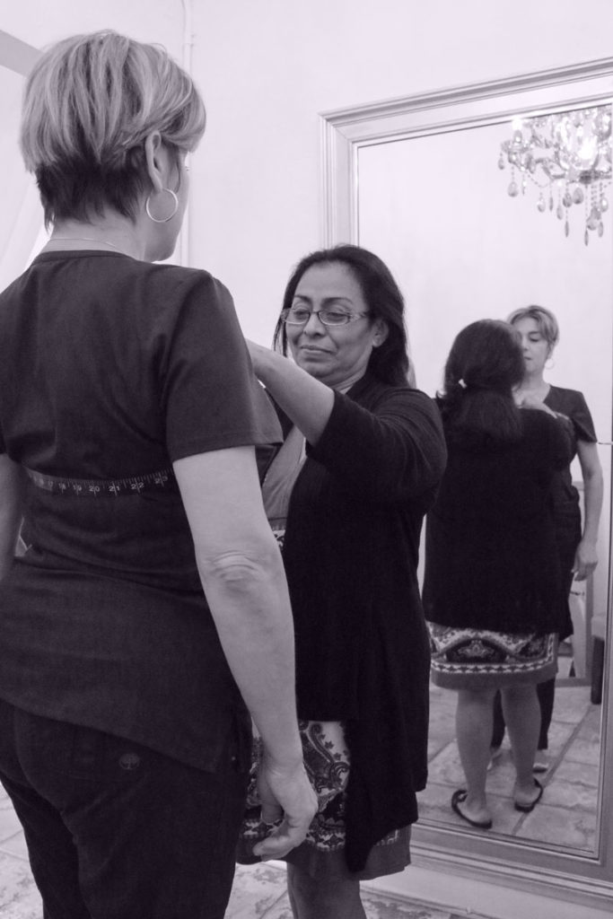 “A lot of my customers I’ve known for so many years that they first come in with a cup of coffee and sit down. Sometimes they’re here for an hour or two hours just talking,” she says. That familiarity makes it easier to accommodate the life stages of their bodies – the triumphs as well as the traumas. In fact, it’s often the fitter who must broach the subject: What medications are you on, have you changed your diet, what’s been happening lately?