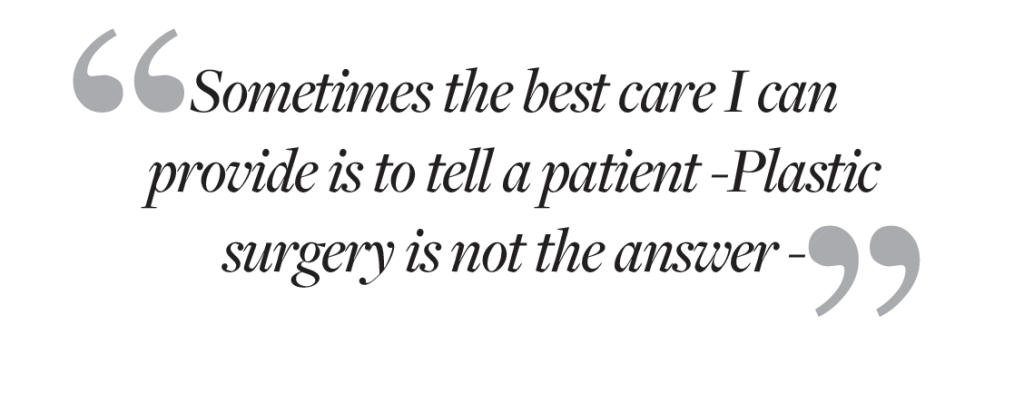 One philosophy that guides my practice is that our services are not for everyone—and that is intentional. Putting patients first means being honest about what will truly benefit them. My role is not simply to perform surgery, but to exercise judgment and ensure patients pursue the right procedure, for the right condition, and for the right reasons. Sometimes, the best care I can provide is telling a patient that plastic surgery is not the answer.