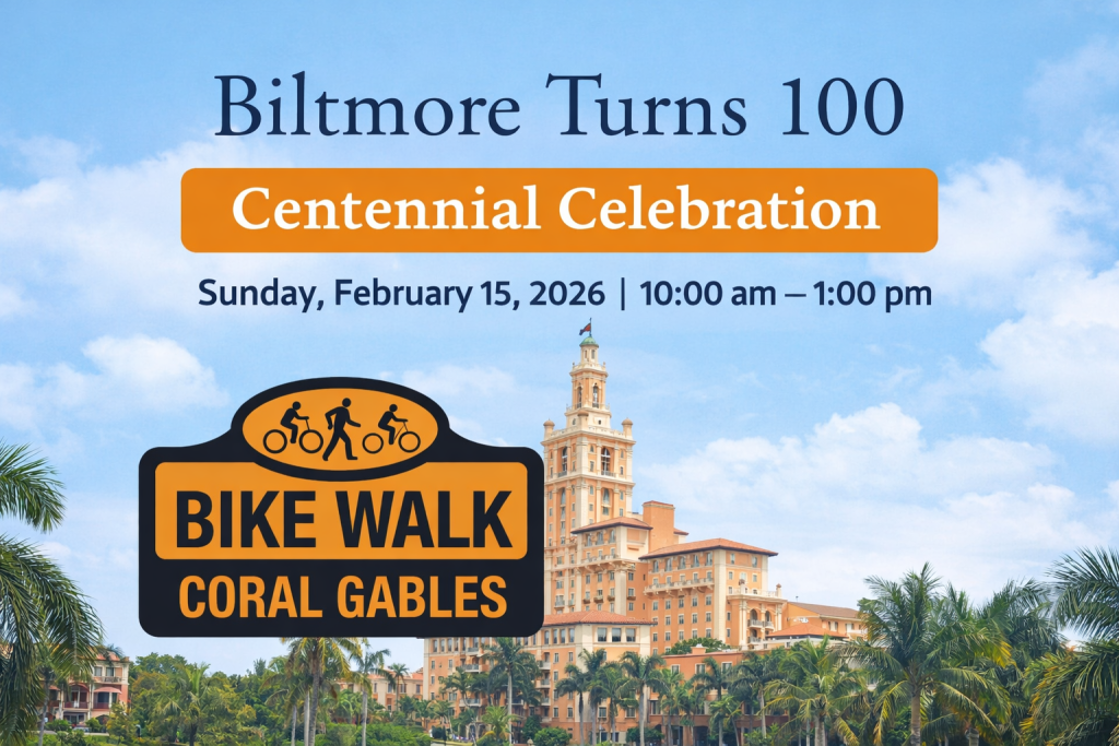 Bike Walk Coral Gables hosts a historic themed ride to the Biltmore that explores the property’s past and preservation. The event concludes with a guided tour led by Chris Rupp, Executive Director of the Dade Heritage Trust, who will provide historical context and insight into the hotel’s design, legacy, and restoration.