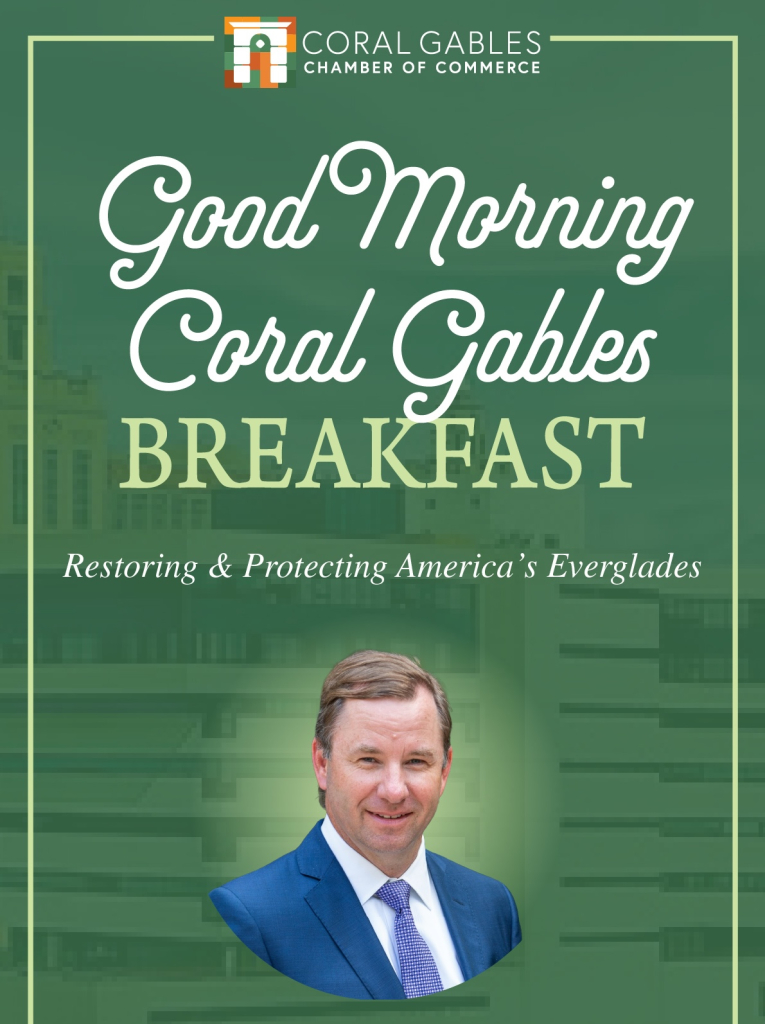 The Coral Gables Chamber of Commerce will host its Good Morning Coral Gables Breakfast at The Biltmore Hotel. The program will feature Eric Eikenberg, Chief Executive Officer of The Everglades Foundation, who will speak on restoring and protecting America’s Everglades.
