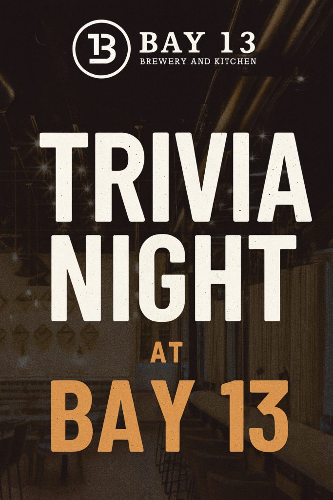 Think & Drink Trivia takes over Bay 13 every Tuesday night with a mix of pop culture, history, and those random facts you didn’t realize you remembered. Grab your team, settle in with a pint, and compete for prizes while testing just how sharp your memory is. Games start at 7 pm, free to play.