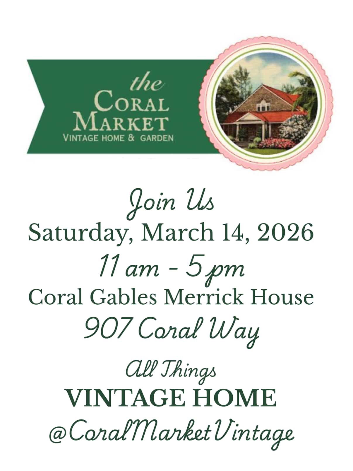 Coral Market, a semiannual vintage market focused on home and garden finds, takes place at the historic Coral Gables Merrick