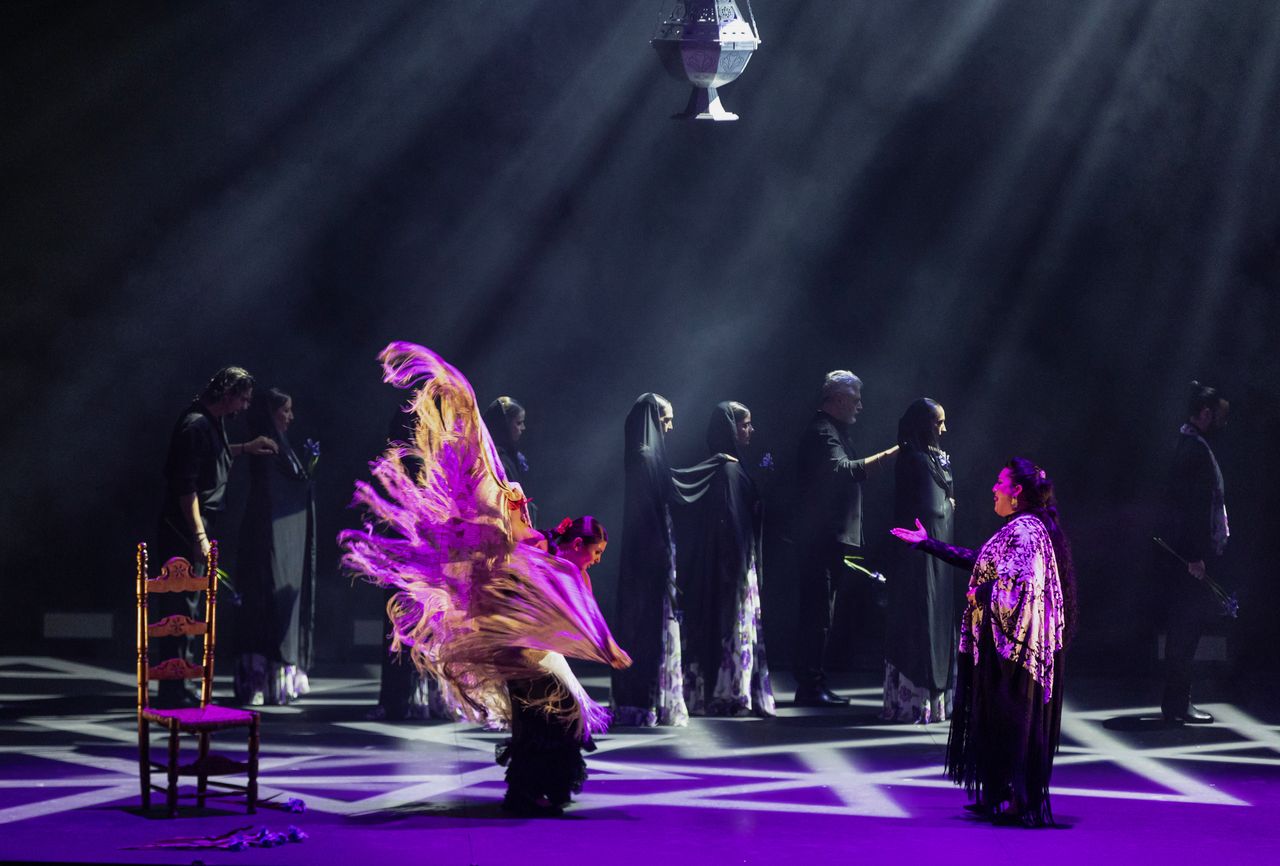 Vuela meaning “fly” is performed by acclaimed flamenco artist Sara Baras alongside 13 dancers and musicians. The work unfolds across four