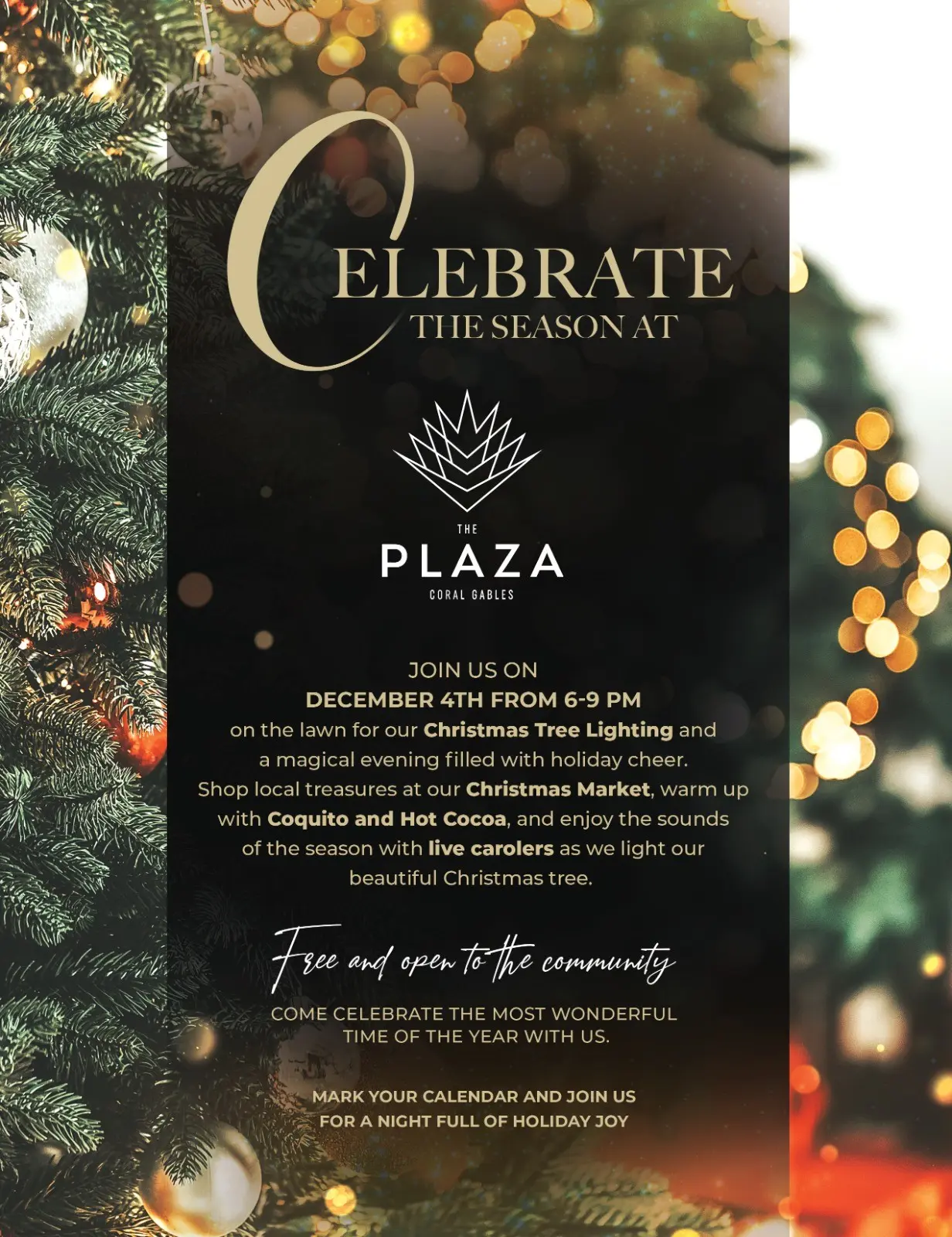 The Plaza hosts an evening of holiday festivities with its Christmas Tree Lighting celebration, open to the public from 6