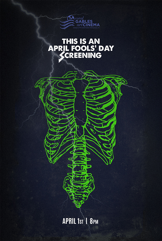 A mystery screening of a cult classic film will take place on April 1 at 8:00 pm, with the title revealed only when the film begins.