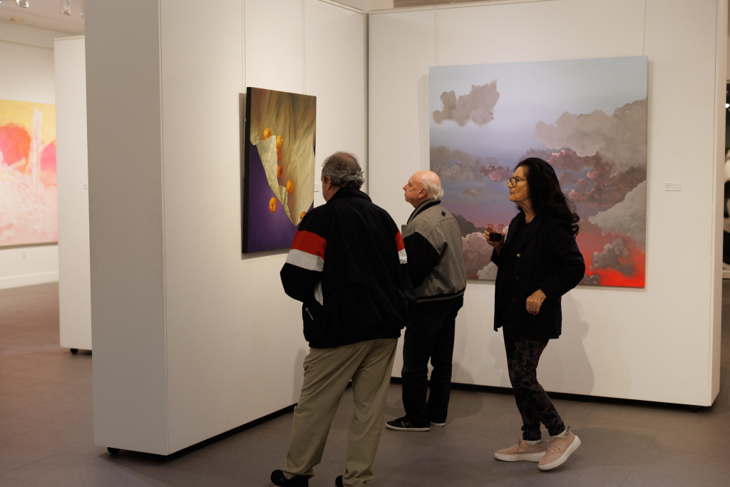 We started our evening at the Americas Collection, one of the art galleries that survived the diaspora. It occupies a large space on South Ponce, a half block up from Nordstrom, and participates in every Gallery Night. As the name implies, proprietor Sylvia Ortiz specializes in artists from Central and South America. The show on the evening we attended (and through March) was called “Hues of Desire” in honor of Valentine’s Day; lady visitors were offered a rose and a chocolate dipped strawberry. The exhibit featured dreamy cloud paintings by Gables-based artist Liv Dockerty and still-life paintings by Chilean artist Francisco Mery, among others.