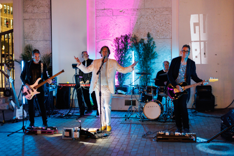 That braced us for a walk down Giralda, which was alive with people despite the chilly temps. Toward the west end of the street, a saxophonist blew melodic jazz next to another free sample station, this one by Ketel One. Another shot and we were ready for the Coral Gables Museum, which was holding an avant-garde dance event in one of the galleries. In their back courtyard (with a cash bar!) We watched pop-rock band GLASS BLOCS play “White Wedding” by Billy Idol, their lead singer (dressed in white) doing a fine punkish snarl.