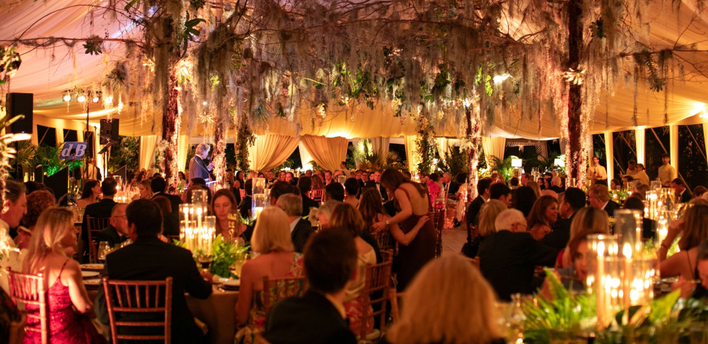 Gala in the Garden once again stood as one of the philanthropic season’s most coveted and impeccably attended events. Presented by Fairchild Tropical Botanic Garden in collaboration with Le Basque Catering, the evening unfolded as a Vanity Fair–worthy affair set along a shimmering lake, surrounded by lush foliage and night-blooming flowers, which opened just in time for a multi-sensory experience beneath the stars, heightened by a spectacular drone show.