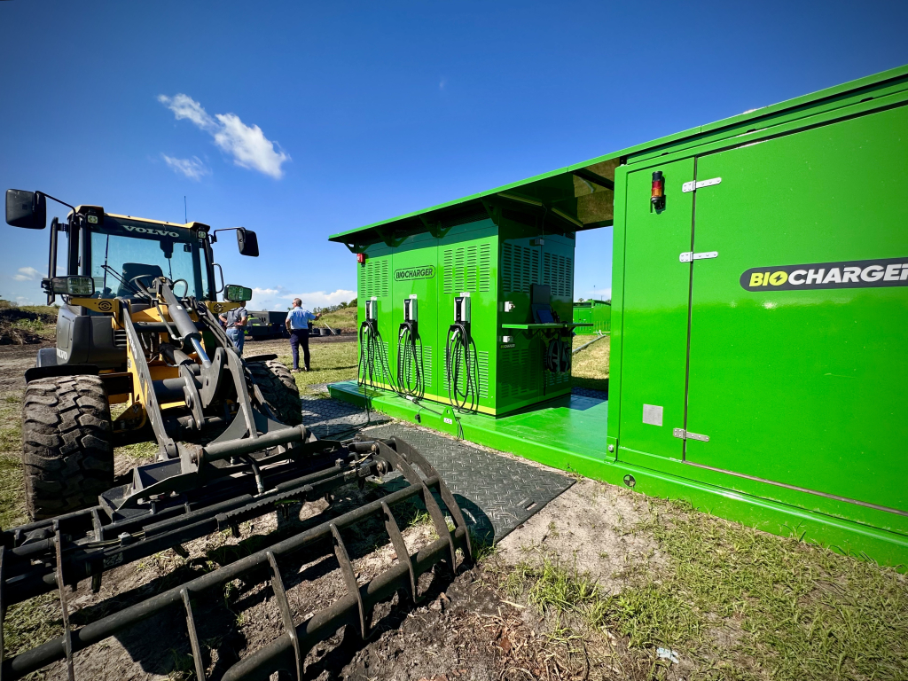 The heat produced during the process will also drive a generator capable of producing electricity, which would then charge battery systems used to power equipment at the facility. The resulting biochar can be used as fertilizer or be processed into a lightweight aggregate similar to low-strength concrete or asphalt used in applications such as sidewalks and parking lots.