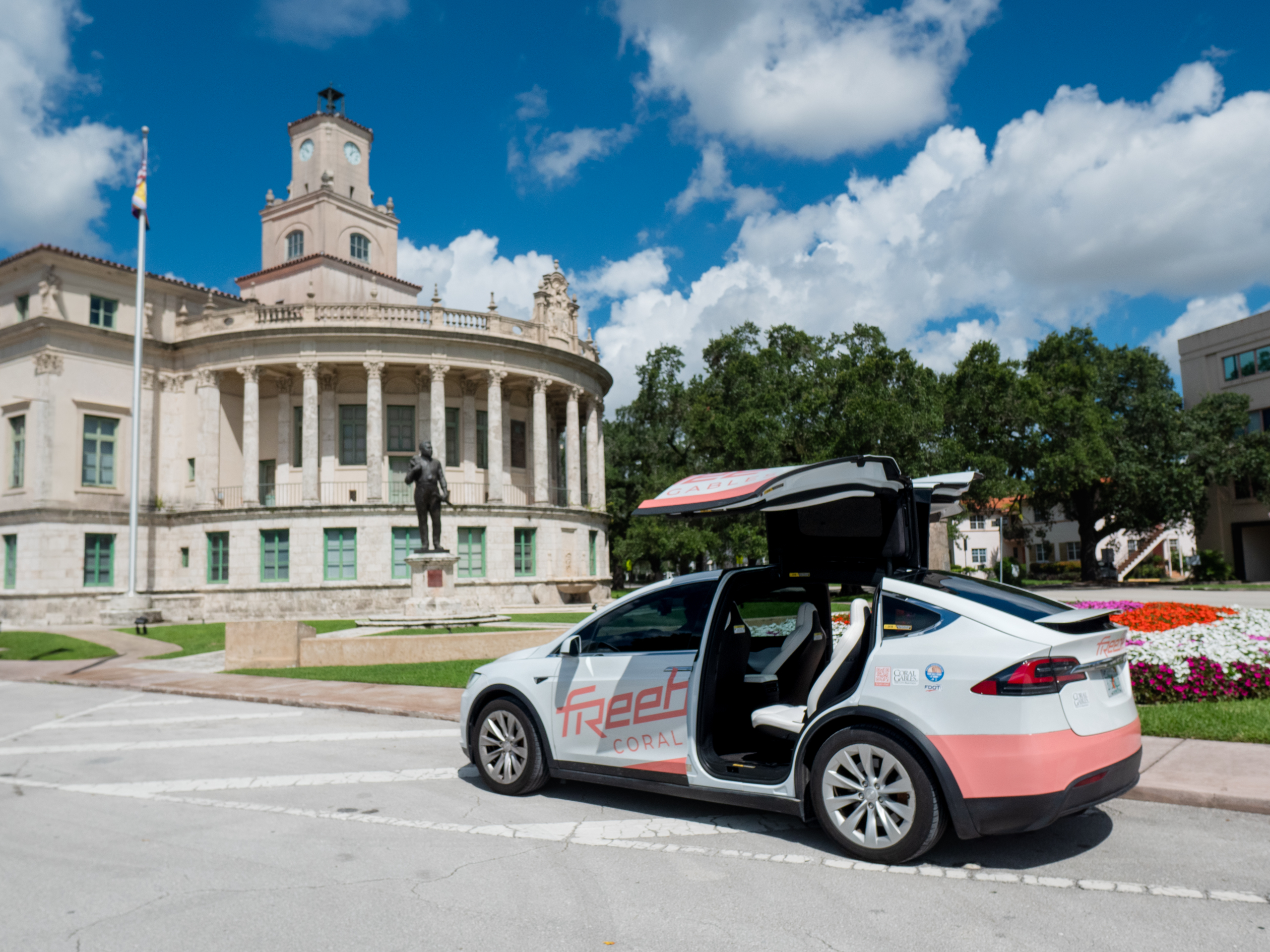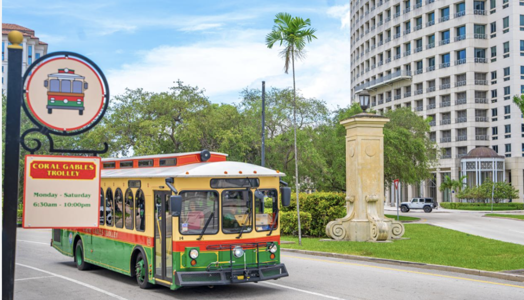 This free downtown service started as electric golf carts carrying advertising, but has since upgraded to Tesla EVs that are funded by the city. Freebees are available to anyone who downloads the RideFreeBee app and typically arrive within 10 minutes. They are used by everyone from CEOs going to meetings to elderly residents who use them to help carry their groceries home. Currently, there are five Freebee cars operating in the city, which last year provided 80,000 rides in the Gables. They also promote economic development, with local retailers promoting their locations and wares on the app and sometimes even on the cars.