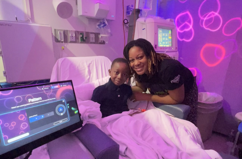 Located just six blocks from the western edge of Coral Gables, Nicklaus Children’s Hospital is a world leader in innovative ways of reducing anxiety in children. Their virtual reality BEAR program is now five years old, reducing anxiety, fear, and perceived pain with immersive VR technology (i.e. headsets that create pleasant natural worlds). Now, Nicklaus is innovating with an Immersive Therapies program that uses lighting, sound, and projection mapping to offer audio-visual distractions for patients at point of care. One, shown here, uses pleasant, colorful floating lights to promote restorative sleep.