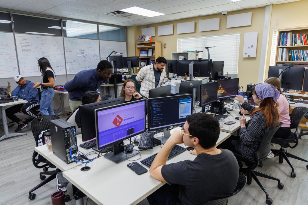 Inside the Coral Gables Public Works compound on SW 72nd Avenue, a small room filled with wires, sensors, laptops, and whiteboards is busy shaping the future of the city. This is the Coral Gables Smart City Lab, a workshop where students, engineers, and city staff experiment with technology to solve real problems for residents. The lab’s mission is simple: come up with practical tools that make city services faster, cheaper, and smarter. Instead of relying solely on outside vendors, the city’s technology team works with student interns to build solutions in-house, testing prototypes for use across the Gables.