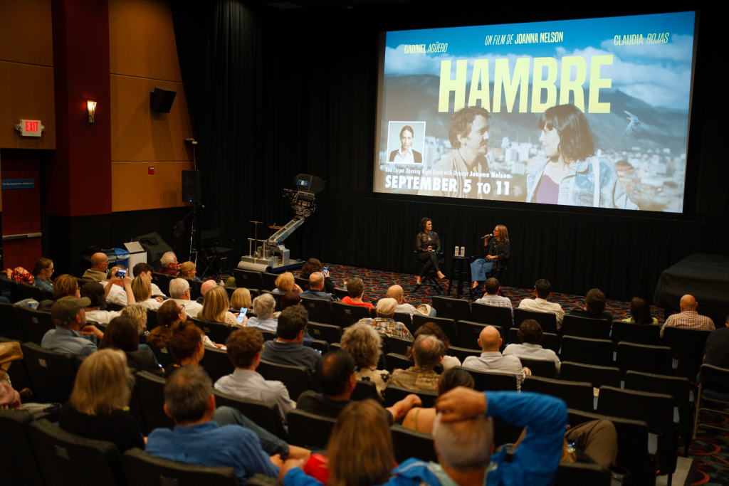 It is a Friday night in September and Brenda Moe is holding a red-carpet event at the Art Cinema on Aragon Avenue. The occasion is the first U.S. screening of the Venezuelan movie “Hambre” – the Spanish word for “hunger”– a movie about the travails of a young couple living under the Maduro dictatorship in Caracas. A small crowd has gathered outside, filing slowly past a buffet of empanadas and tequeños, courtesy of local Venezuelan eatery Punto Criollo.