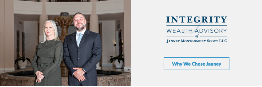 In turbulent times, the difference between financial anxiety and financial confidence comes down to one thing – the quality of the partner standing beside you. Integrity Wealth Advisory at Janney Montgomery Scott is that partner. When global headlines are uncertain and markets feel uneasy, Susan and Ray bring the steady expertise, calm clarity, and unwavering integrity that helps clients navigate market conditions and changing worry into confidence.