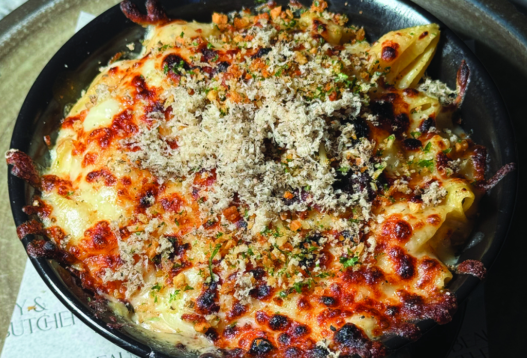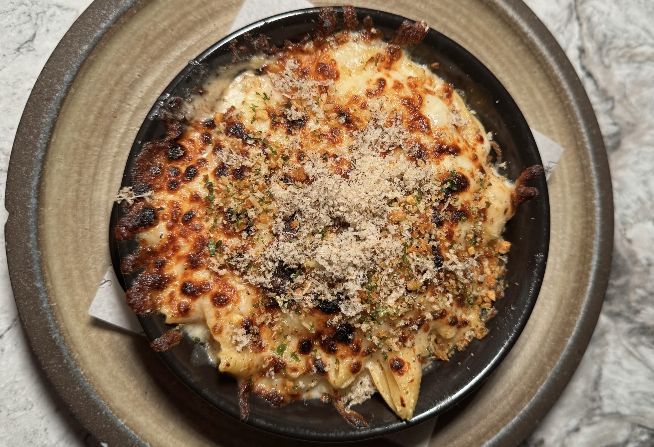 Bazille, Nordstrom’s third-floor bistro, offers an elevated twist on traditional mac with its Crab Macaroni and Cheese ($23.50), made with fusilli, jumbo lump crab, mozzarella, provolone, pimento cheese, green onion, and parmesan. The bold, buttery crab is flavorful and rich, while the crispy breadcrumbs on top add a satisfying bite and some texture.