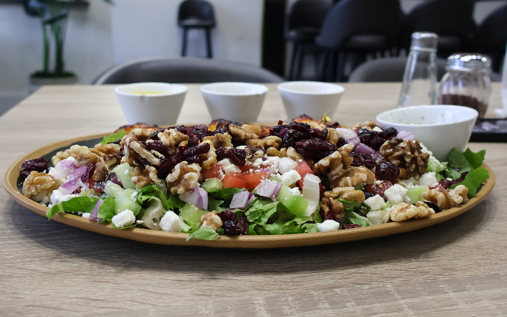 Despite the name, the Loaded Salad at Shahs of Kabob is surprisingly refreshing ($14). A bed of shredded lettuce is dressed with the traditional tomato, cucumber, and onion combo – good enough on its own, yet elevated by the sweet tartness of dried cranberries, the tangy kick of feta, and the crunchiness of walnuts. To properly dig into this medley of flavors, one must drench the plate with Shah’s addicting sumac sauce.