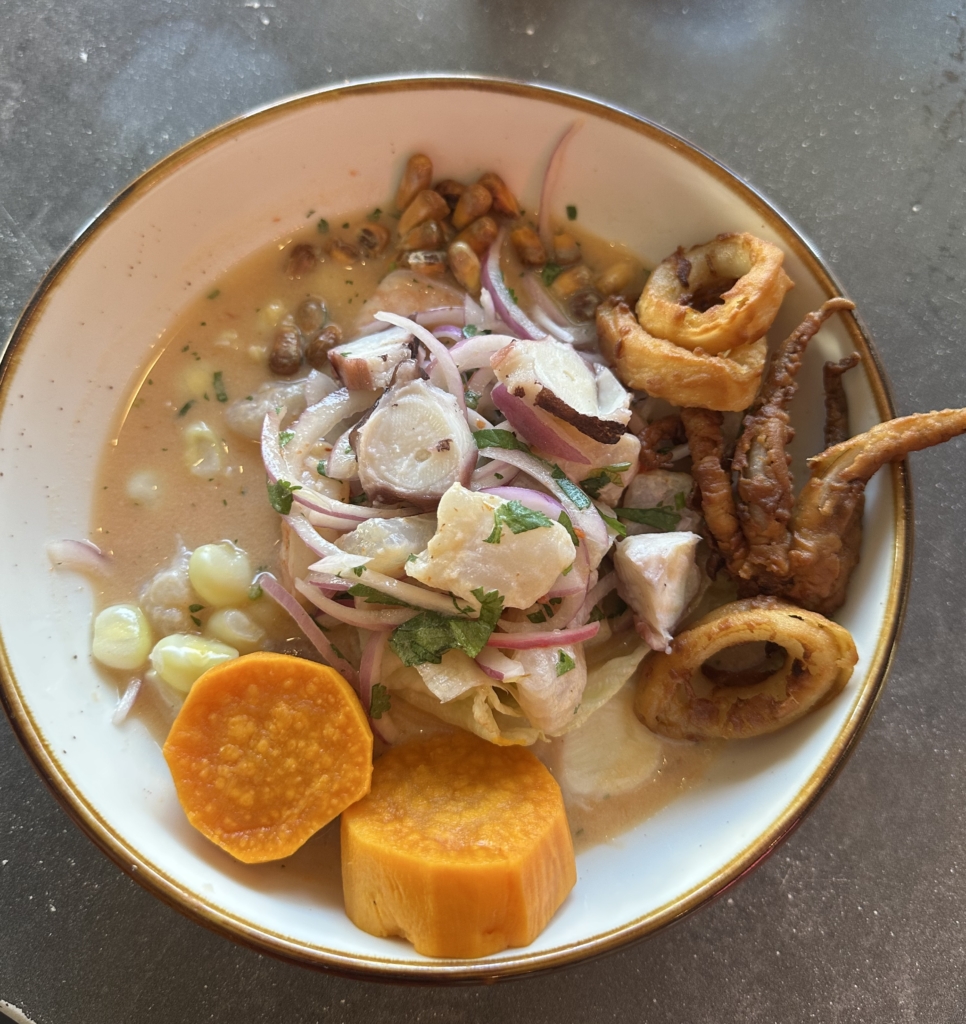 The Ceviche Mixto ($22.50) at Pisco y Nazca offers a perfect blend of subtle spice that is delicious and enjoyable. With a mix of fish, shrimp, octopus, fried calamari, rocoto leche de tigre, changa and sweet potato, it is the perfect balance between sweet, spicy, and citrusy. Light and refreshing, it’s an ideal choice for seafood lovers who enjoy a gentle kick without overwhelming spice. Vibrant, zesty, and satisfying.