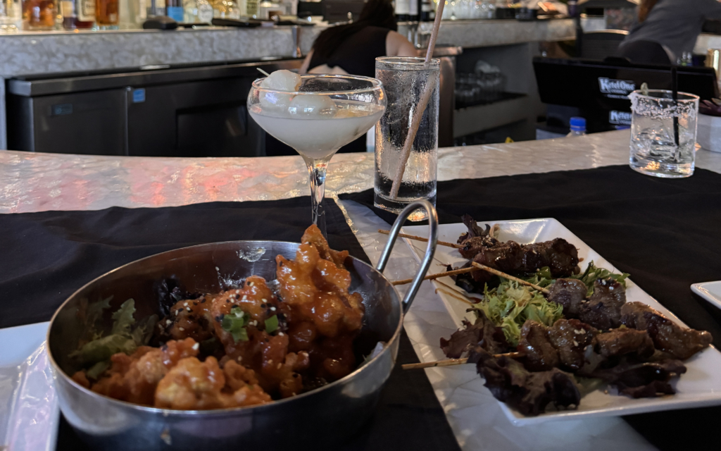 Sawa’s culinary variety and depth is also on display during happy hour, where the quantity of items is such that they must be divided into six sections featuring about 15 items each ranging from $8 to $20. If you’re looking for a great deal, go for the $8 Bronze section and a $6 beer. We splurged on the cauliflower tempura and the filet mignon yakitori from the Silver section ($12), both excellent and decently portioned, and a $9 classic cocktail.