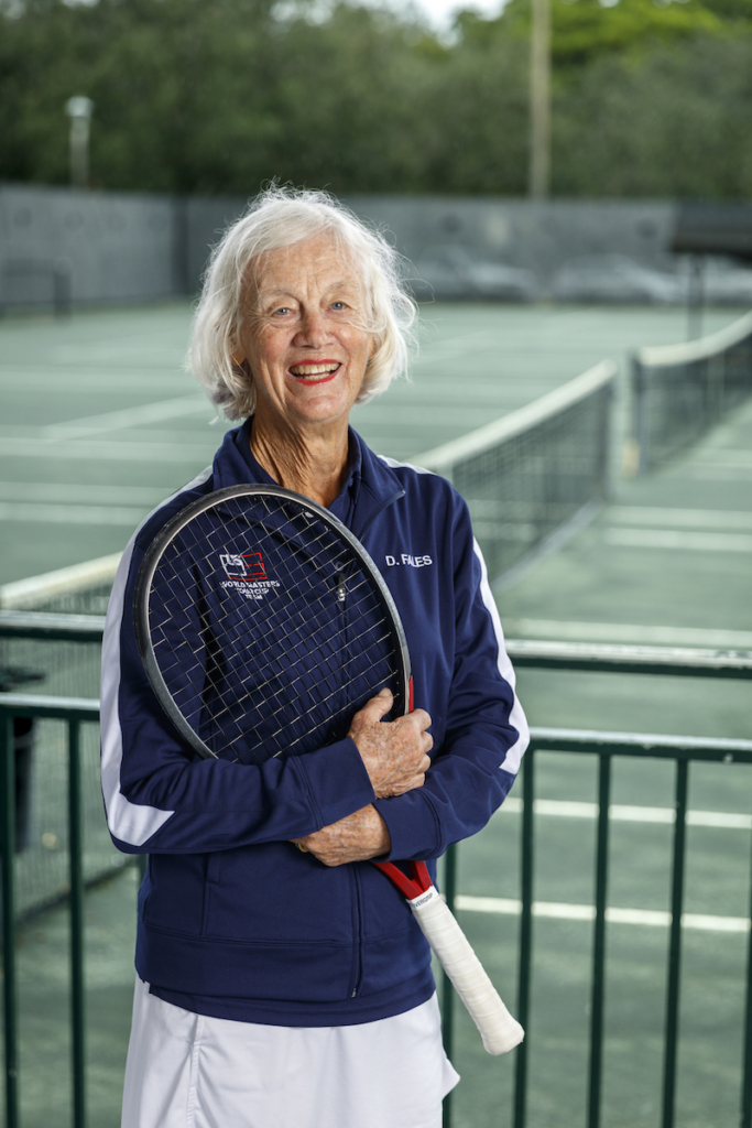 In October, Fales set a record by winning the International Tennis Federation World Championships in women’s singles, doubles, and mixed doubles for her age group. “I’ve won the world championship in every age group,” she says proudly. “But the distinctive part now is that I have won three titles each year for the last three consecutive years.” Not many players play all three events, especially in their 80s, which means Fales’ record may never be broken — at least, that’s not likely for a long while.