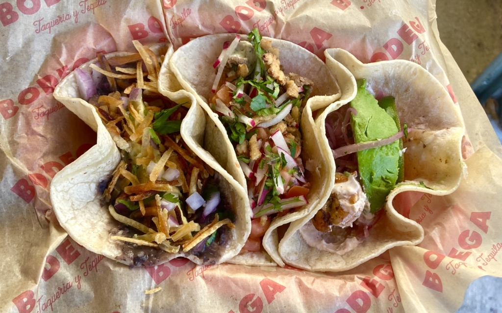 The open-air garage of Bodega Taqueria y Tequila’s new Coral Gables location offers a casual dining experience, serving the authentic Mexican street food the brand is known for. Choosing from their classic and specialty tacos, the winner was the Tequila Camarón ($5.50), its tequila-marinated shrimp delivering a quiet kick. The richer Steak Chimichurri ($5.75), topped with fresh radish, and the Aguacate ($4.25), a vegetarian option with crunchy potato sticks, were also contenders.