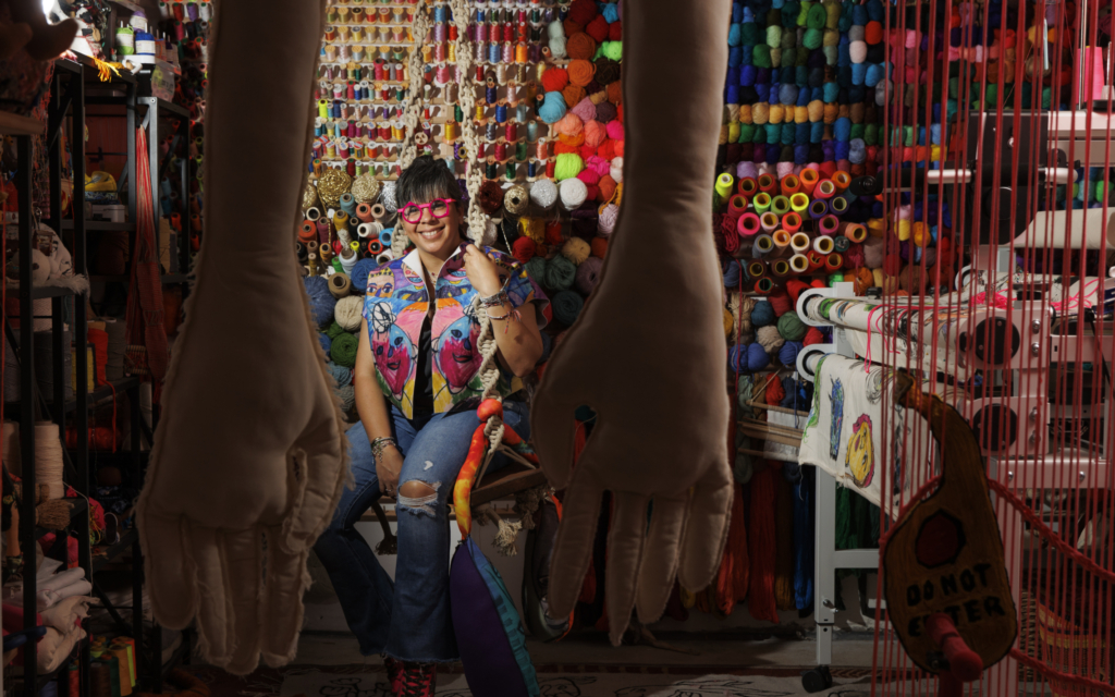 To Molina, a crochet quilt is art, or a denim jacket that’s been embroidered. But because of the “sense of domesticity” that’s intrinsic to fiber art, “it hasn’t been elevated.” She aims to change this, partly through her Red Thread Studio, which she opened this year in Coral Gables. Eighteen multidisciplinary artists work out of the studio, using everything from sewing thread to tufting guns in order to create their pieces.